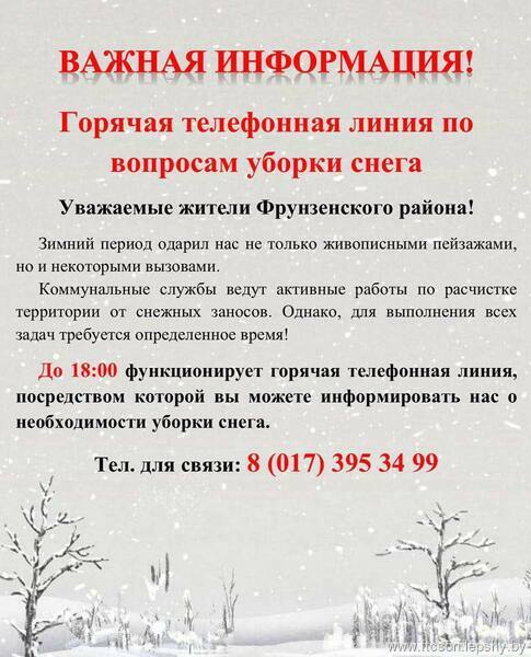 ГУ "Территориальный центр социального обслуживания населения Фрунзенского района г.Минска" информирует, что через контакт-центр по телефону 139 нетрудоспособным гражданам Фрунзенского района можно оформить заявку на доставку продуктов и лекарств дежурными социальными работниками и волонтёрами.