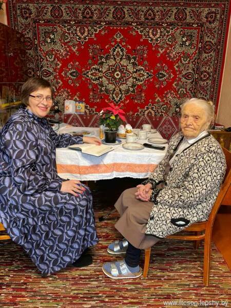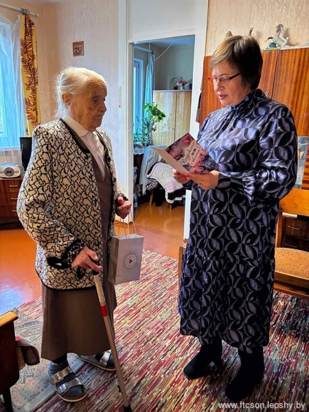 22 декабря 2025 года в рамках новогодней благотворительной акции «От всей души» сотрудники ГУ «ТЦСОН Фрунзенского района г. Минска» поздравили с 95-летнием долгожительницу Фрунзенского района г. Минска, ветерана труда и просто интересную и обаятельную женщину Русецкую Анну Дмитриевну!